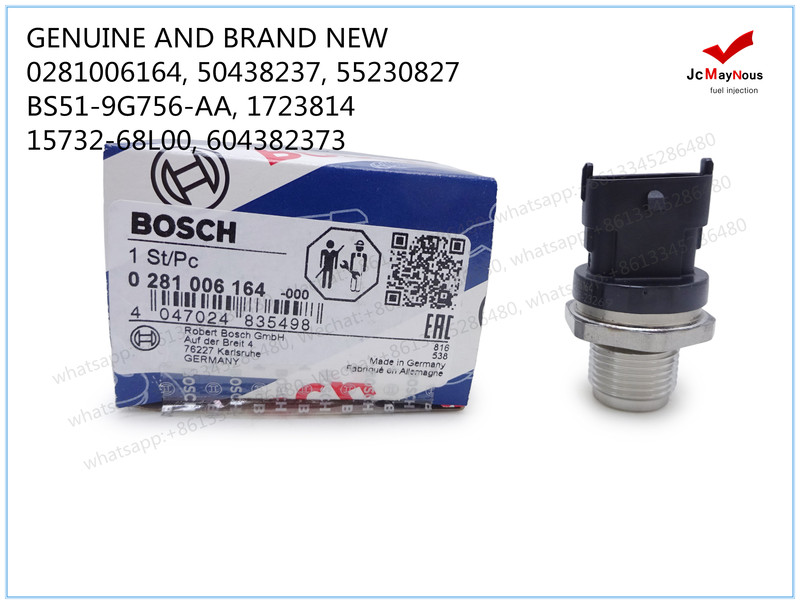 GENUINE AND BRAND NEW COMMON RAIL FUEL INJECTION PRESSURE SENSOR 0281006164 50438237 55230827 BS51-9G756-AA 1723814 15732-68L00 604382373 FOR ALFA ROMEO, CHRYSLER, CITROEN, FIAT, FORD,JEEP, OPEL, PEUGEOT, IVECO, SUZUKI ENGINE
